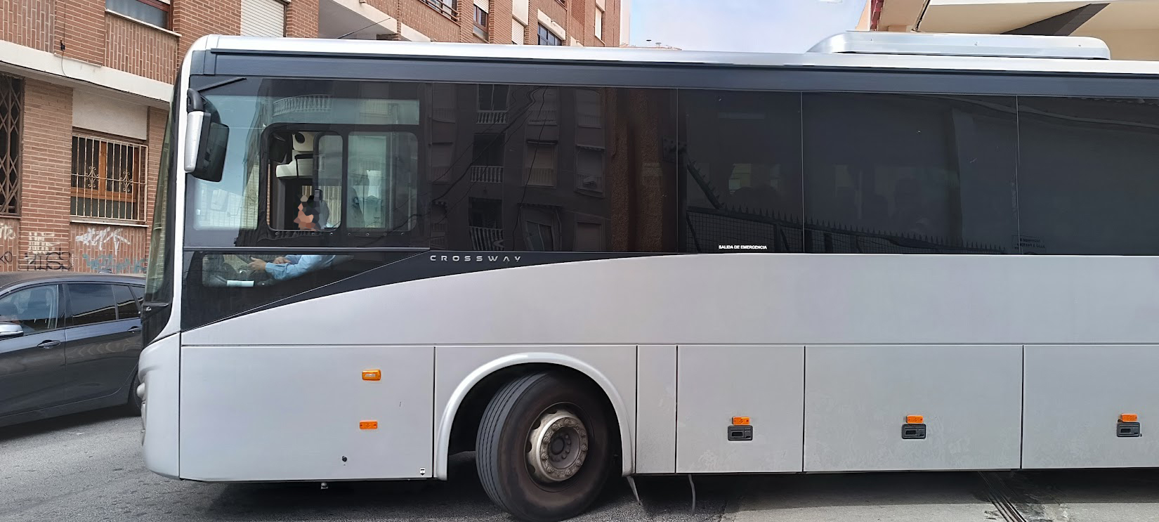 Dedicated school transport in Spain is marked with a special pictogram showing the type of service. These buses are subject to stricter speed limits, with their maximum speed reduced by 10 km/h compared to other vehicles.