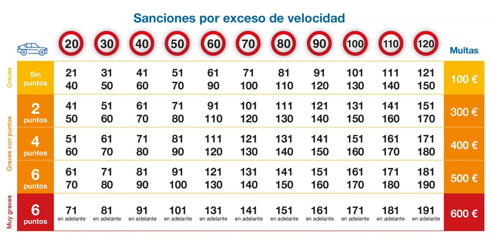 For the purpose of simplicity, we are using 50 kilometres per hour throughout this article, but the principle applies at all speeds. To demonstrate the proof of what we are saying, look at the table of fines provided by the DGT in their Know Your Traffic Laws leaflet, and you can clearly see, for a 50 kilometre per hour limit road, the fine is issued at 51 kilometres per hour. Not 56, or 58, or any other variation, but 51.