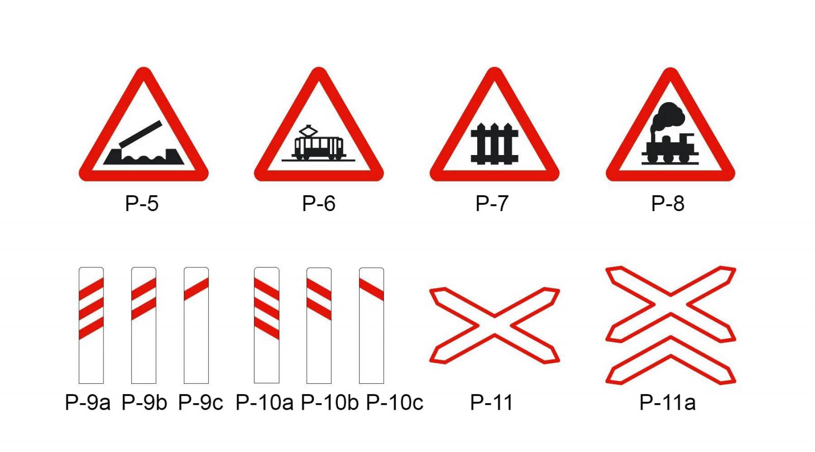 Within the precautionary category, there are a series of signs which often cause confusion, which have the official cataloguing from P-5 to P-11, and refer to certain types of crossings.