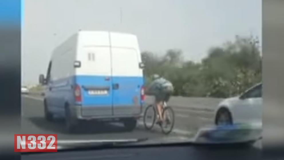 The cyclist was not under their own power, but was clinging with one hand to the back of a van as it travelled on the MA-19 Llucmajor to Palma motorway, a reckless act that could so easily have ended in tragedy.