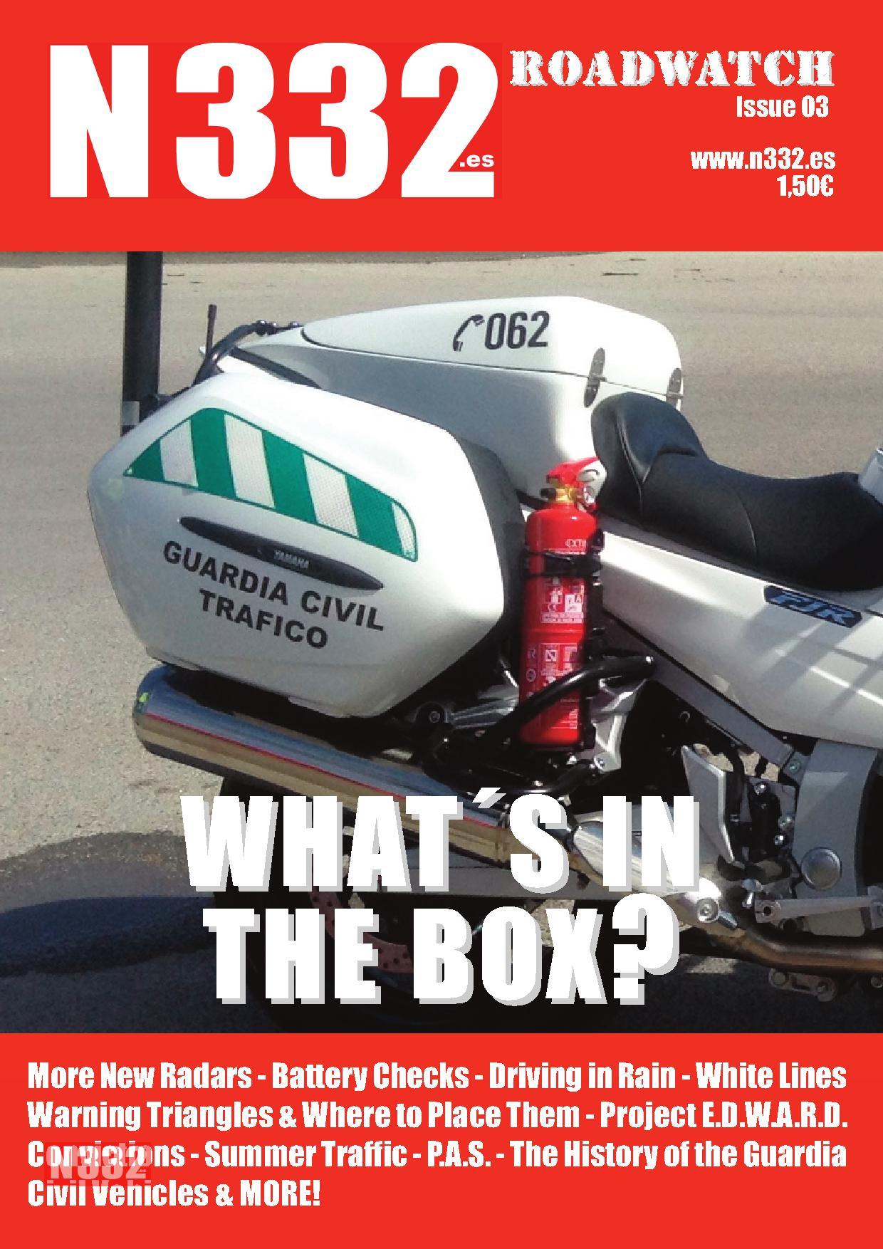The latest issue of N332 RoadWatch, featuring a focus on the secrets of the Guardia Civil motorbike´s kit, driving in rain, battery checks, PAS, Project EDWARD and a look at the history of the Guardia Civil.