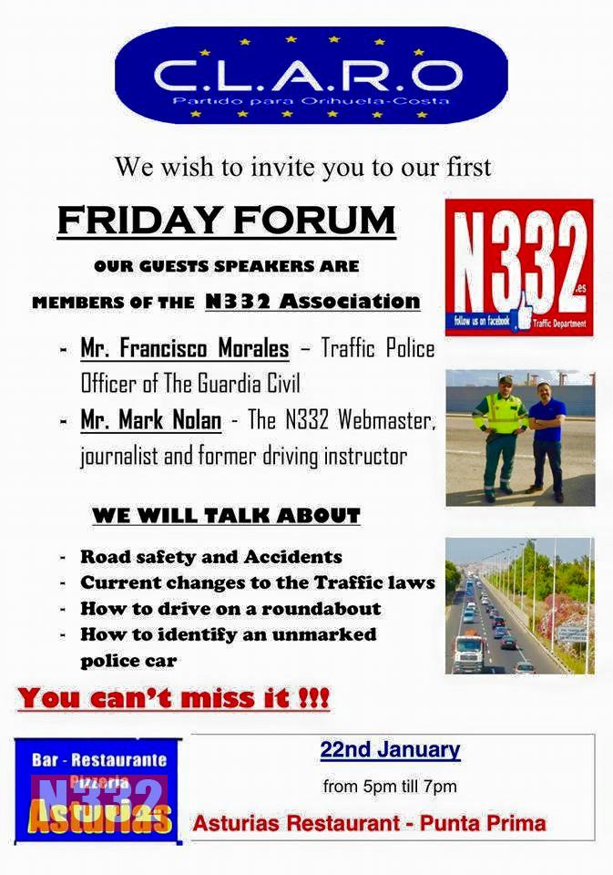 On Friday, members of the N332 group will be giving an informative talk in the Asturias Restaurant, between Torrevieja and the Orihuela Costa.