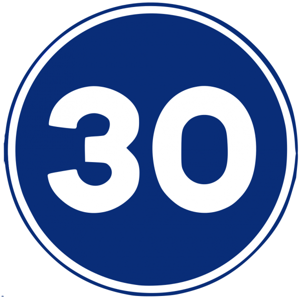 This sign is a blue square, on which numbers appear. This also indicates a maximum speed, but in this case, it is only recommended, it is not mandatory. Of course, it is a good idea to reduce your speed according to the recommendation, as it is there for a reason. If, however, you are going slightly faster than recommended, it is not sanctionable. You will often see this sign at locations such as bends, or tunnels. It may also be accompanied by another indicator sign which tells you when it should be applied.