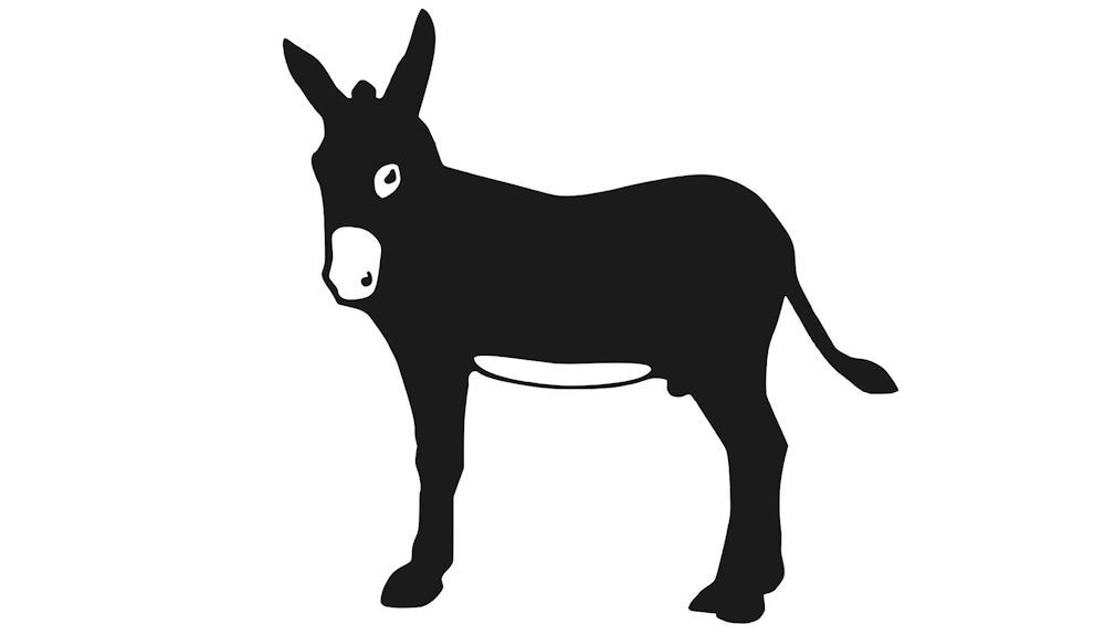 The sticker of a black donkey with a white belly, snout and eye is very common, especially in Catalonia, as it refers to a breed of this animal native to Catalonia and the Pyrenees, which was originally used as a silhouette to raise awareness of the need to protect this species so that it does not become endangered. Today, it is often seen more of a symbol of Catalan nationalism that uses it in opposition to the typical Spanish bull.