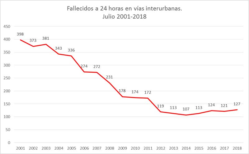In July, 2018, there were 127 deaths due to traffic incidents on interurban roads, which showed an increase of 6 deaths compared to July last year. In the month of August, 2018, 132 people died in a traffic related incident, 28 more than in August of last year.
