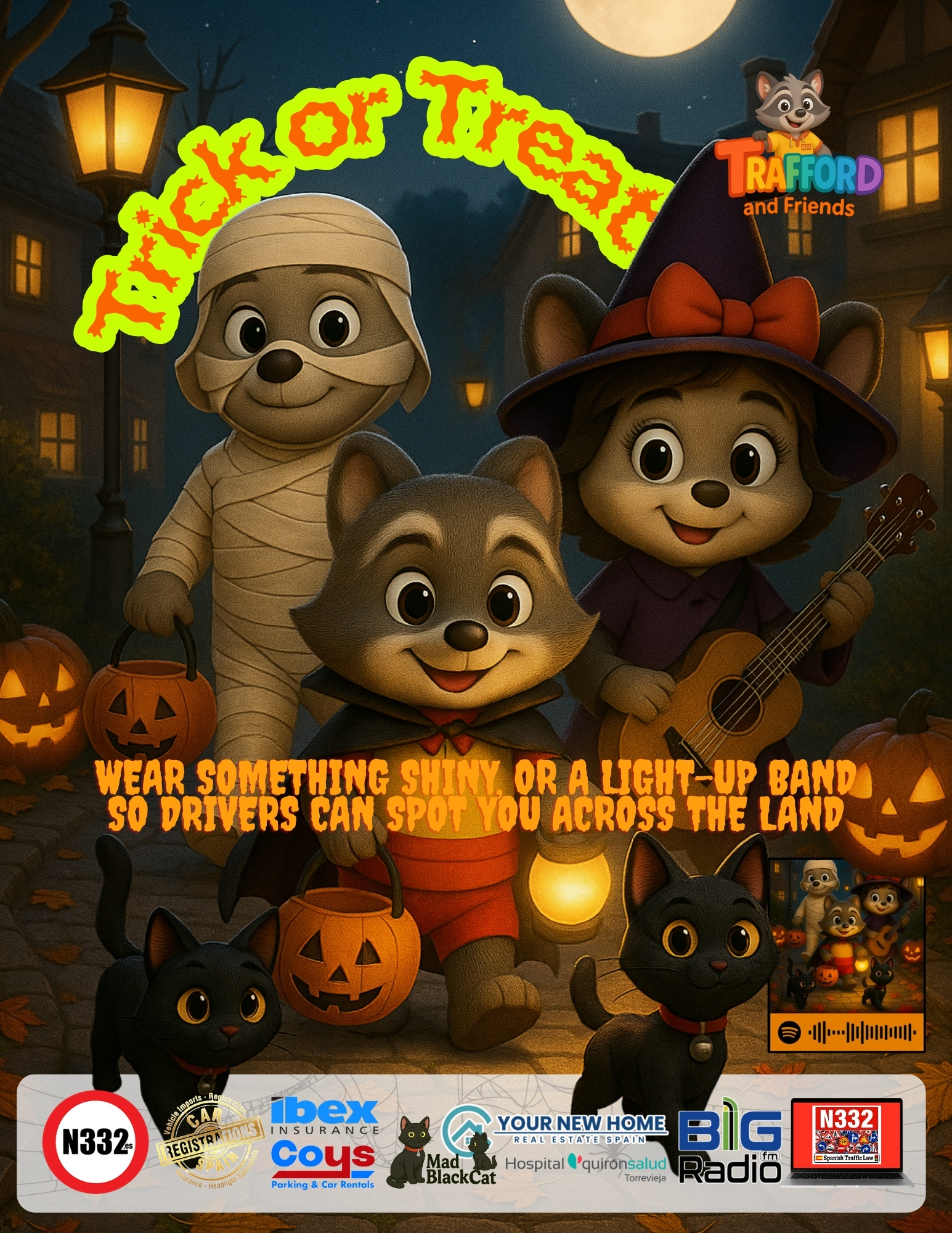 As part of the Trafford and Friends project — our very own “N332 for Kids” — Trafford has released a brand-new Halloween song all about staying visible and safe while out after dark. With its catchy chorus:
